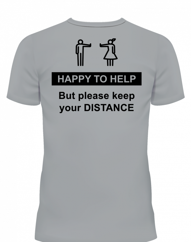 Unisex T-shirt with social distancing message / graphic to help keep staff safe. also available in poloshirt version, see HP959